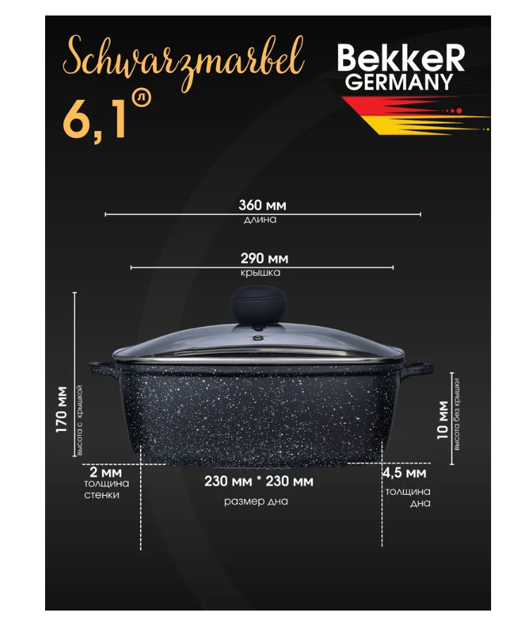 Кастрюля Bekker SCHWARZMARBEL BK-3824 6,1л квадратная интересное: