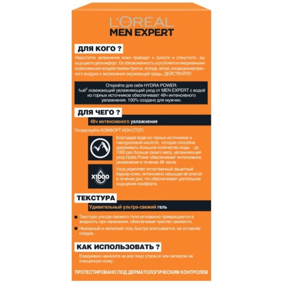L'Oreal Men Expert Увлажняющий крем-уход "Hydra Power" свежесть и комфорт, 50мл