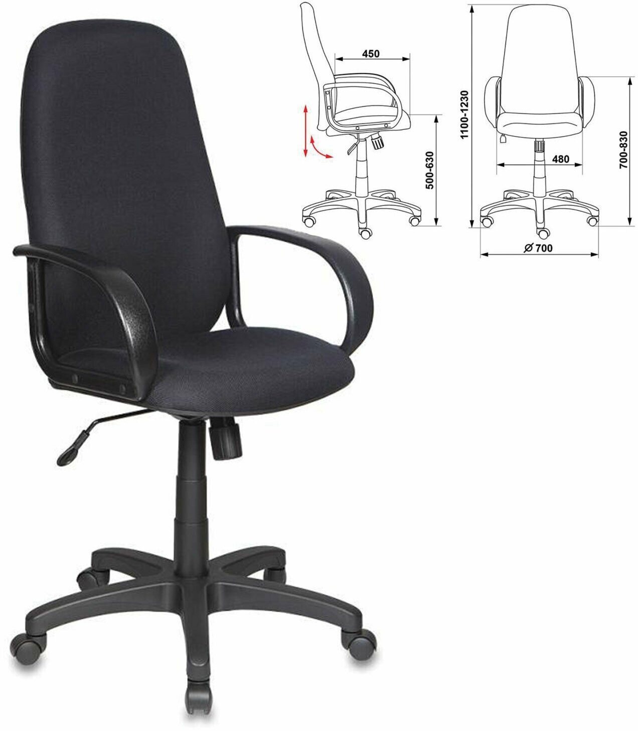 Кресло Бюрократ компьютерное черное, ткань, крестовина пластик - Кресло руководителя, с подлокотниками