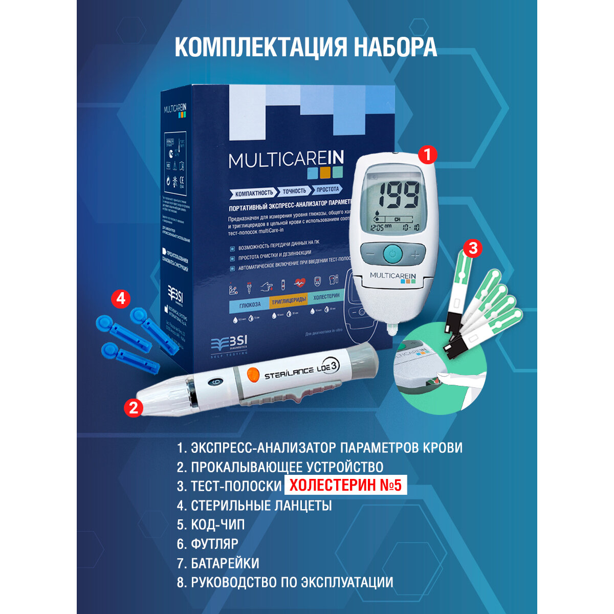 Портативный экспресс-анализатор крови BSI MultiCare-in