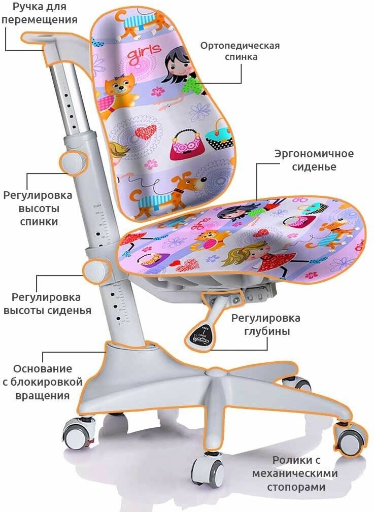 Растущее детское кресло для дома Match (Y-528) KY для обычных и растущих парт + чехол