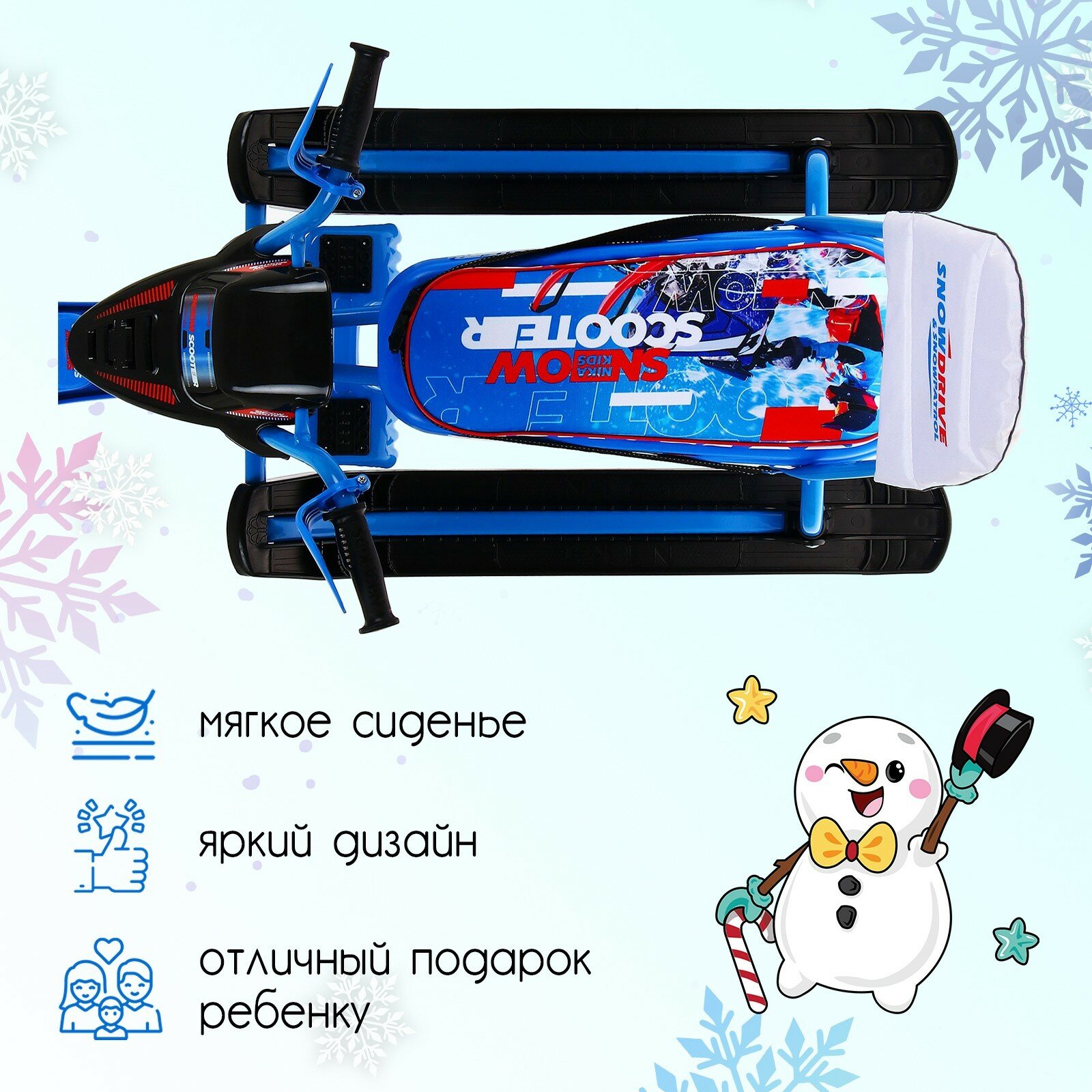 Снегокат для детей НИКА SNOWPATROL, трос с автоматической намоткой, складная спинка, велоруль