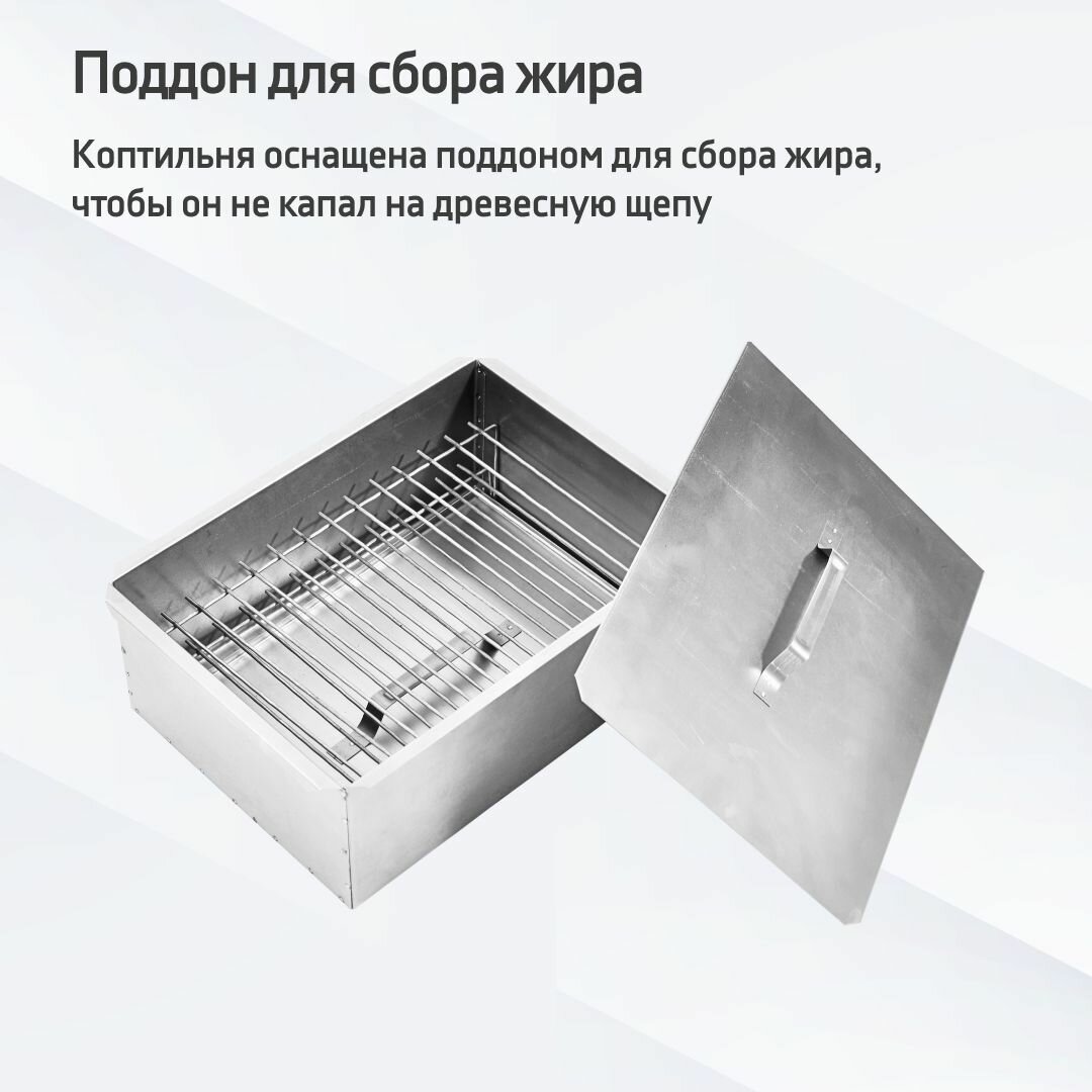 Коптильня двухъярусная с поддоном для сбора жира 380х280х170 сталь 1,5 мм (К-003) Тонар