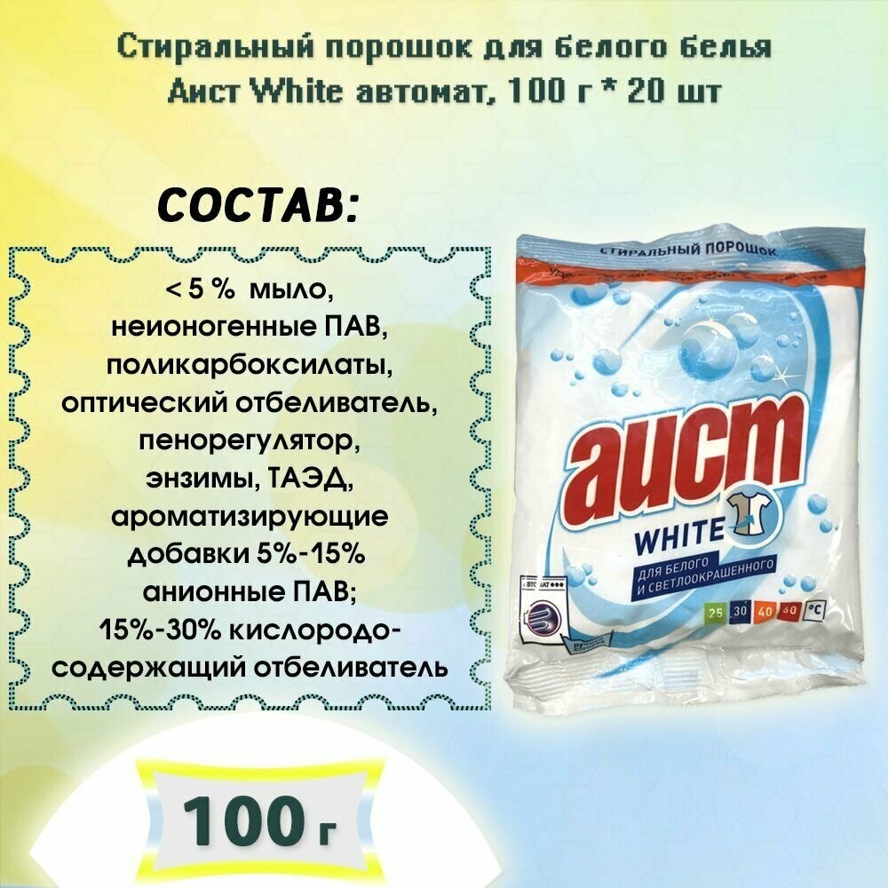 Купить Стиральный порошок для белого белья Аист White автомат, 100г х 20шт