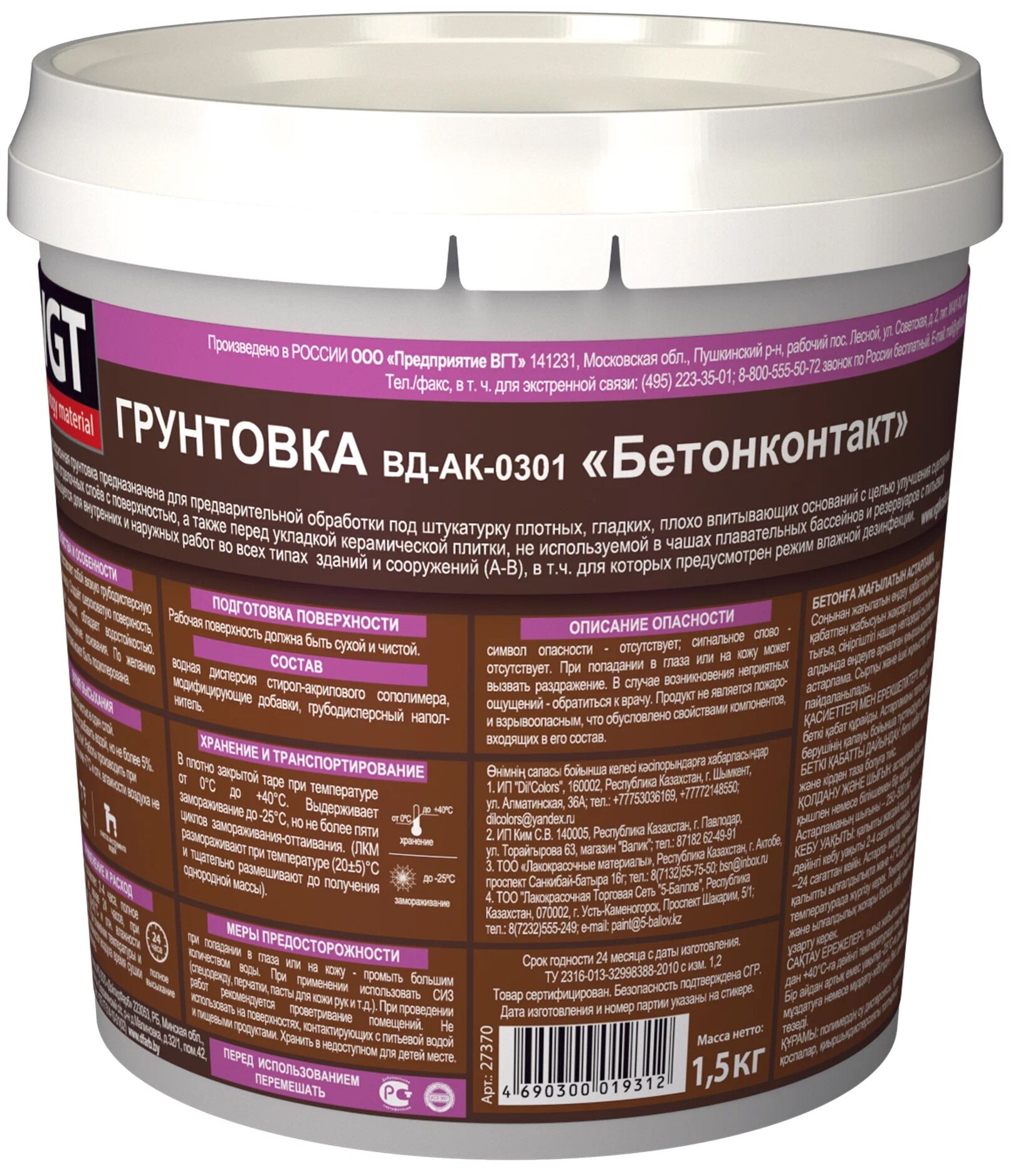 VGT Грунтовка ВД-АК-0301 "Бетонконтакт" 1.5 кг
