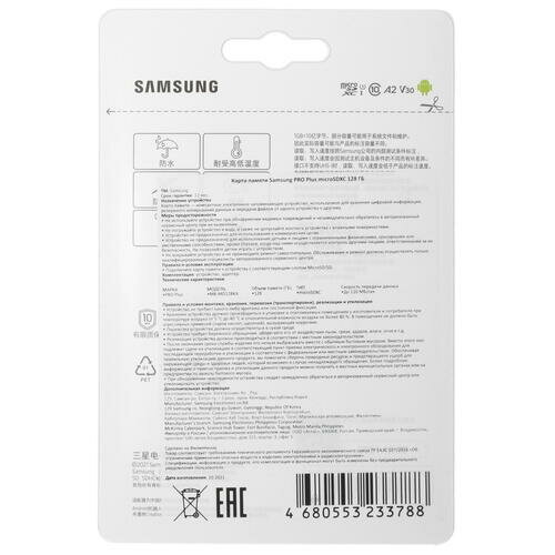 Карта памяти micro SDXC 128Gb Samsung PRO Plus U3 A2 V30 180/130MB/s (MB-MD128G-K)
