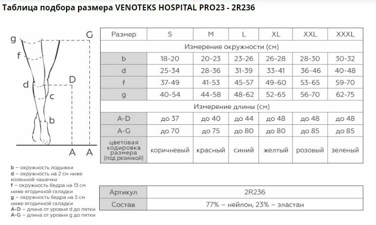 Госпитальные противоэмболические чулки 2 класс HOSPITAL PRO23 2R236 Venoteks, размер: XL