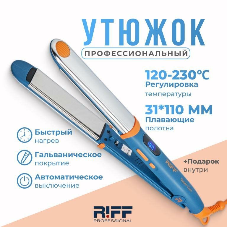 Утюжок для укладки волос эллипсовидный RIFF Sapphire Blue Щ1899 31 мм гальванический 120-230ºC
