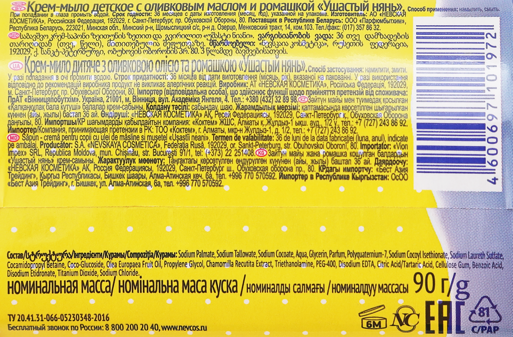 Невская косметика Крем-мыло Ушастый нянь с оливковым маслом и экстрактом ромашки 90 гр