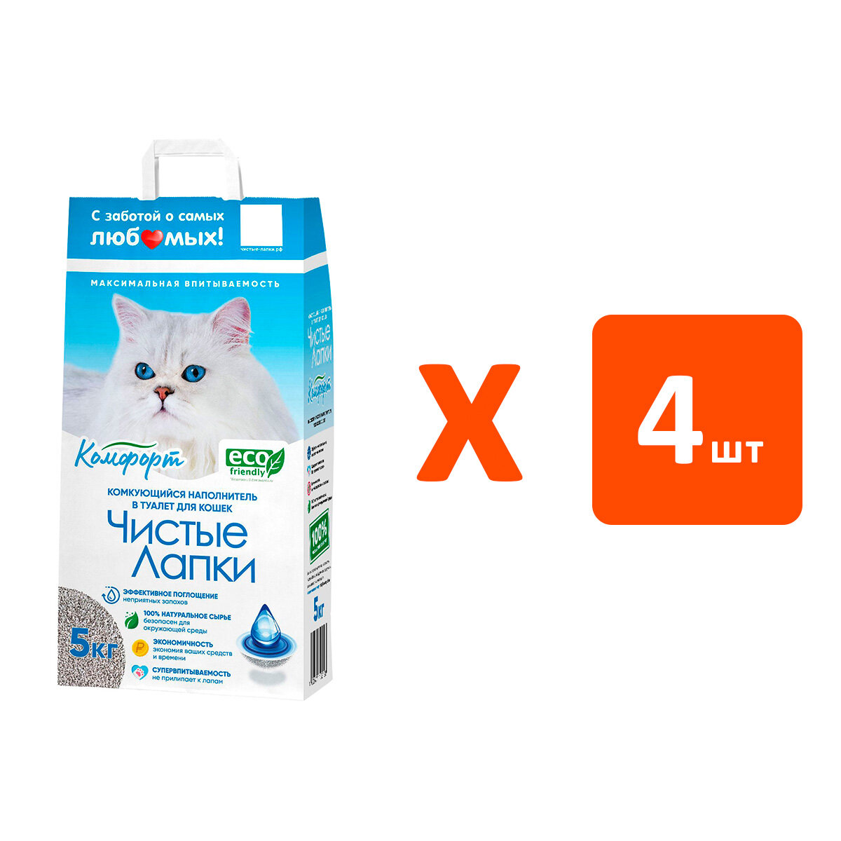 Купить Чистые лапки – наполнитель комкующийся для туалета кошек (5 кг х 4 шт)