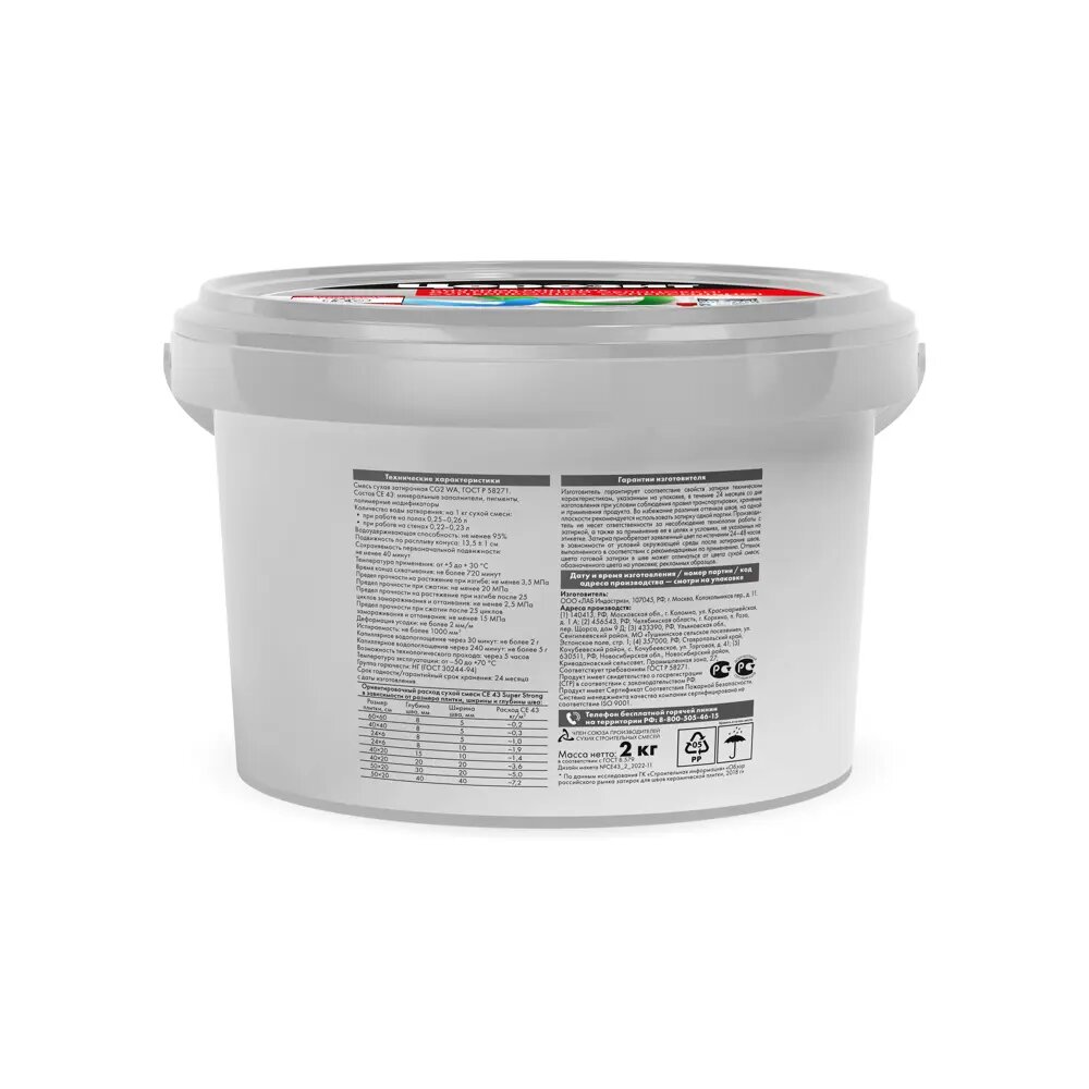 Затирка церезит / CERESIT CE 43 Super Strong, 2 кг, дымчато-белый 02