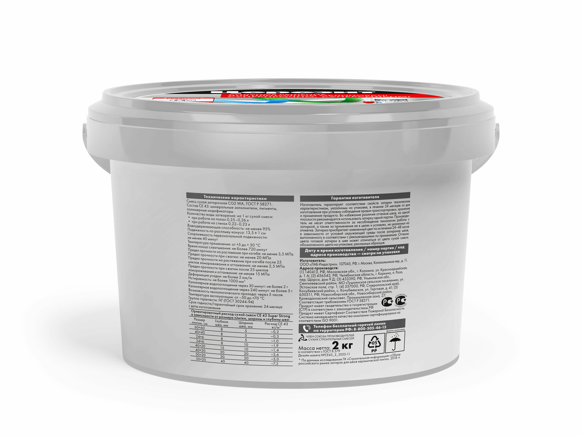 Затирка Ceresit CE 43 Super Strong, 2 кг, 2 л, серый 07