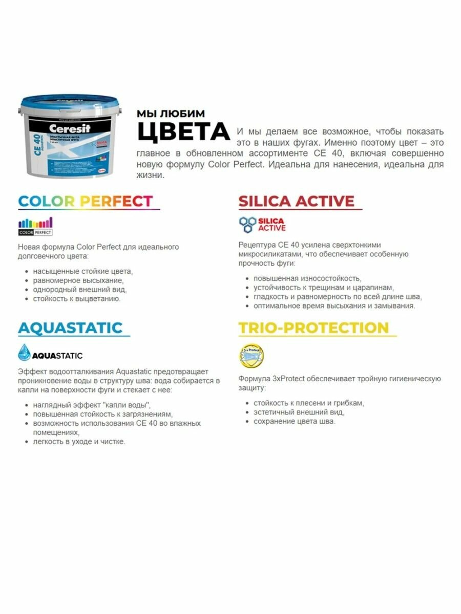 СохранитьЗатирка Ceresit СЕ 40 Aquastatic, 2 кг, мельба 22 интересное: