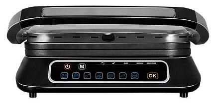 В этом гриле всё как надо, и минусов то не найти. Блюда можно размораживать и греть. А для приготовления доступно 6 отдельных режимов - бекон, птица, сосиски, мясо, рыба, котлеты. В каждом режиме своя температура нагрева, максимальная конечно же для мяса, и она достигает 240 градусов, что позволяет быстро зажарить мясо внешне и сохранить сочность внутри. Гриль самостоятельно определяет толщину блюда, от этого рассчитывает степень его готовности и отображает в виде индикации на панели. Поэтому сделать стейк своей любимой прожарки, можно просто достав его, ориентируясь по панели, а не протыкая термометром или разрезая его. В обще, хороший гриль, качественный, мощный, да и в уходе не сложный. |