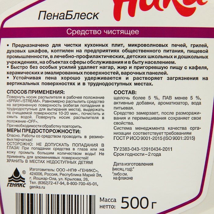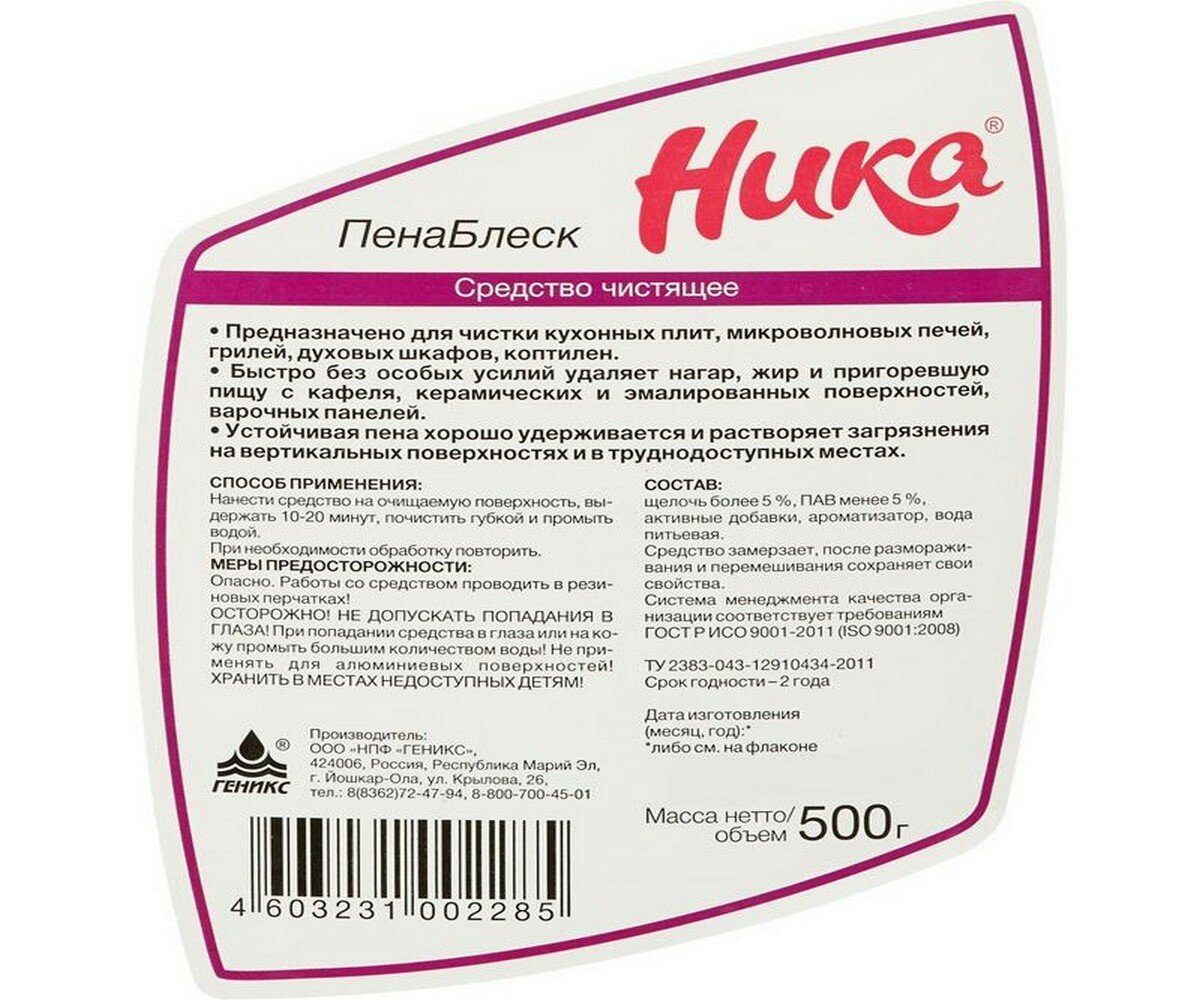 Промышленная химия Ника-пенаблеск 0,5л интересное: