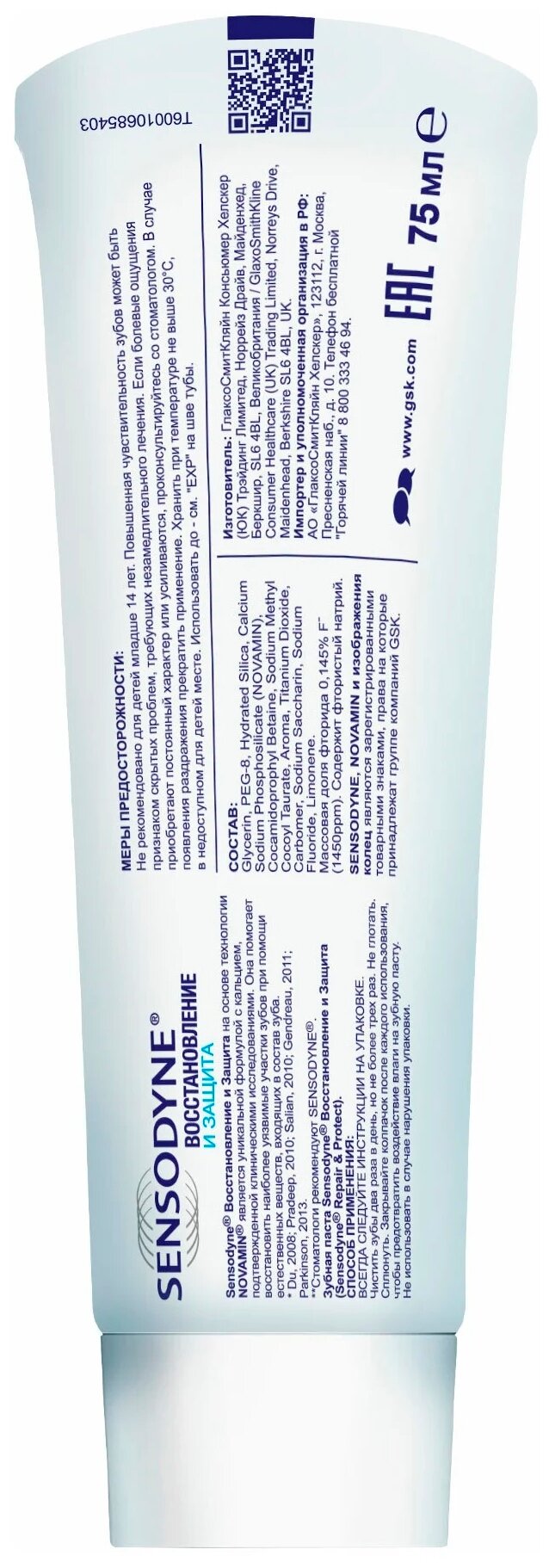 Зубная паста Sensodyne Восстановление и Защита, для чувствительных зубов, 75 мл