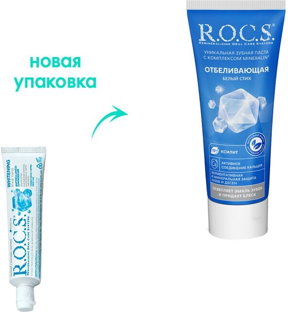 Купить Зубная паста R.O.C.S. Белый стих Отбеливающая, 60 мл, 74 г