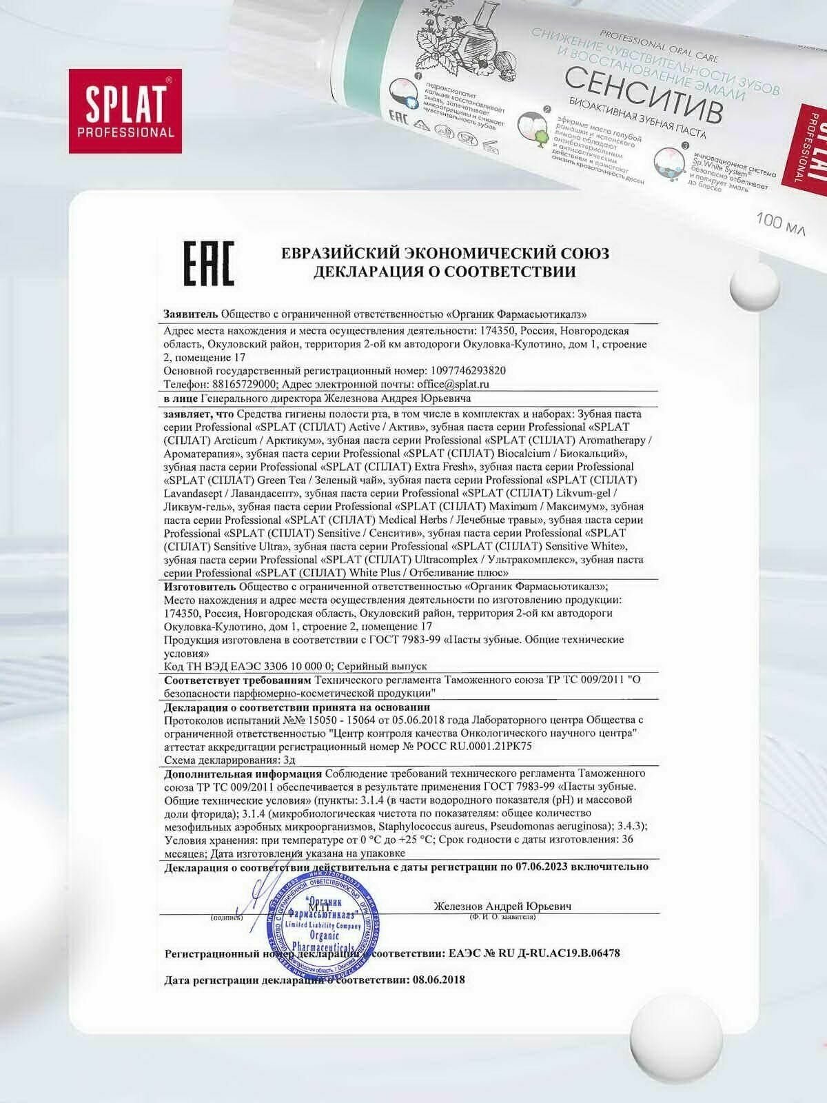 Зубная паста серии Professional «SPLAT (сплат) SENSITIVE/сенситив». 100 мл, (5 шт)