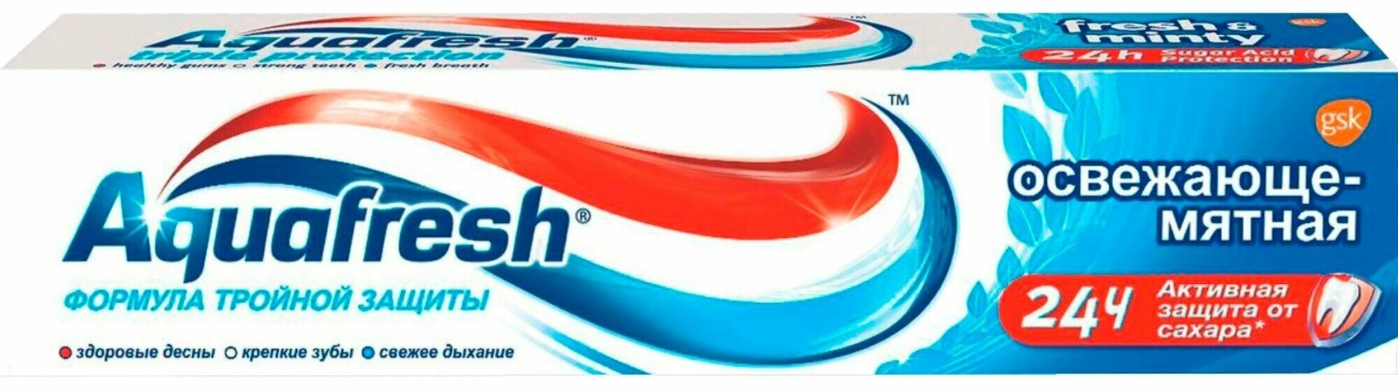 Зубная паста Aquafresh Освежающе-мятная с фтором для тройной защиты полости рта: защита от кариеса, укрепление зубов и свежесть дыхания, 100 мл 2 шт