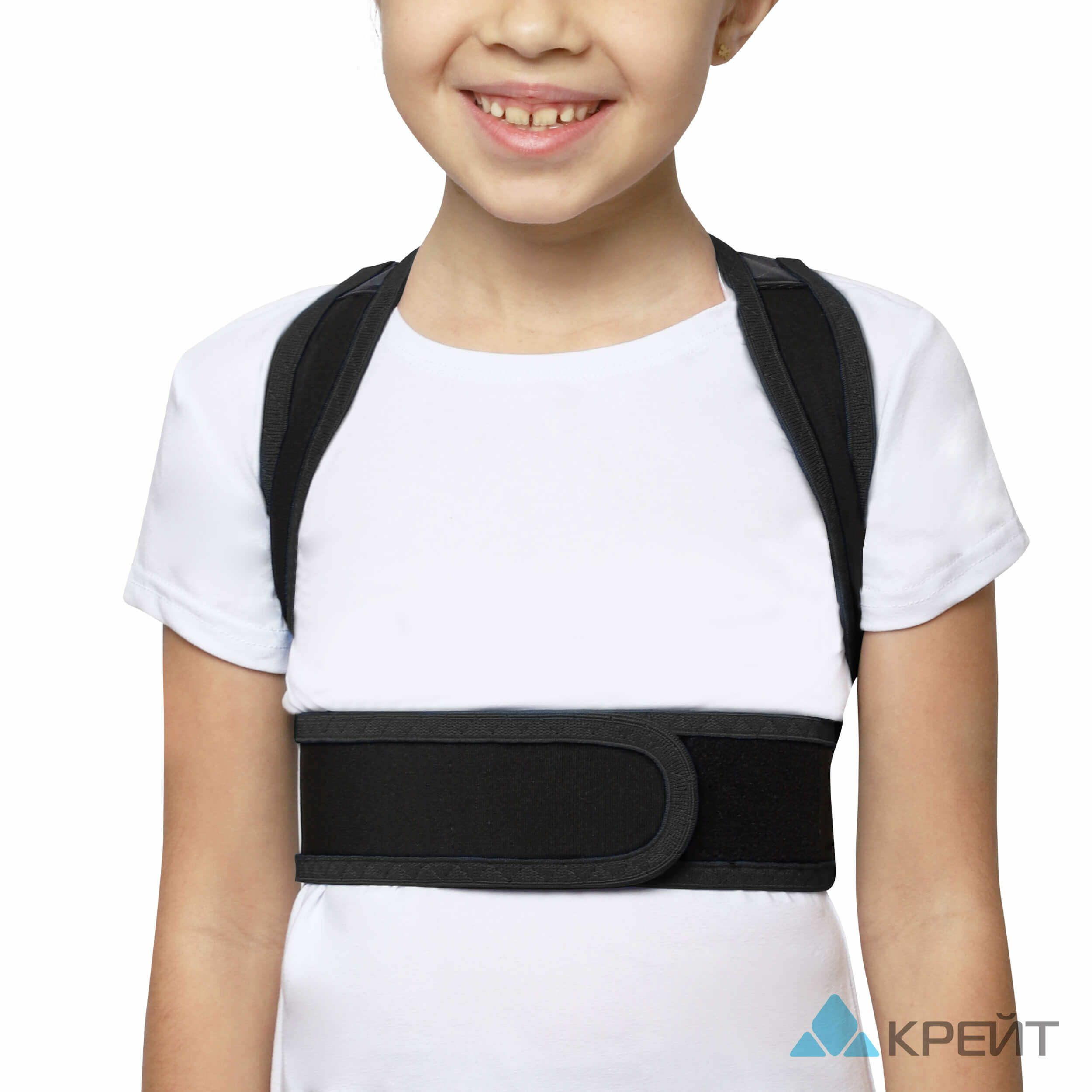 Корректор осанки (реклинатор) ортопедический для детей Крейт Е-11 размер 1, черный (обхват талии 40-50 см., 2 металлических ребра жесткости)