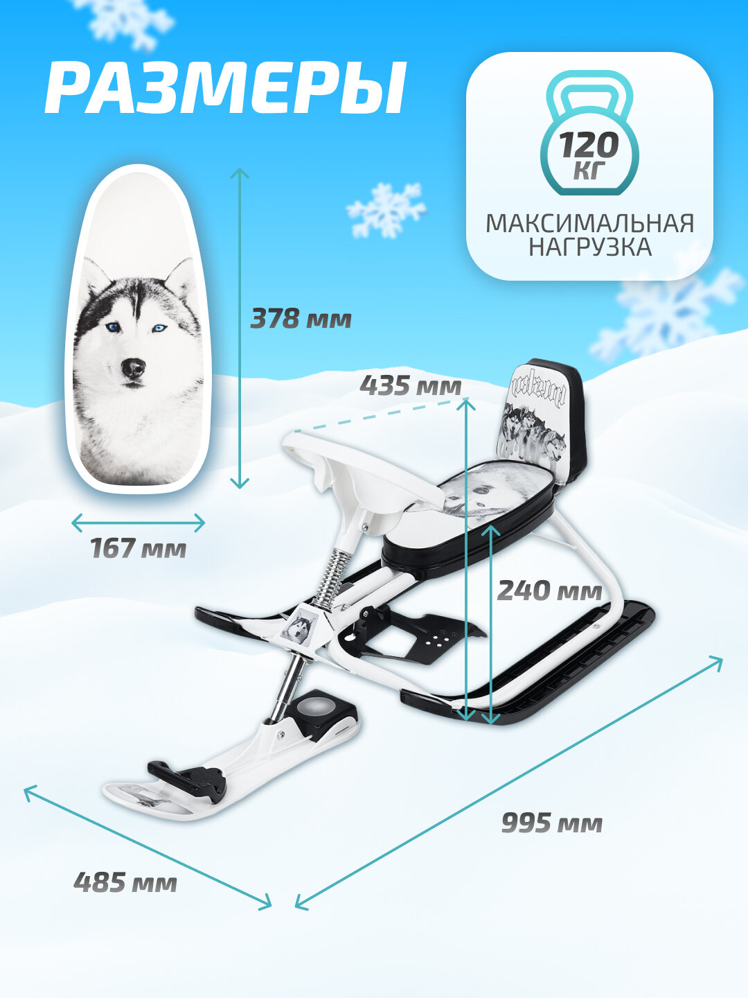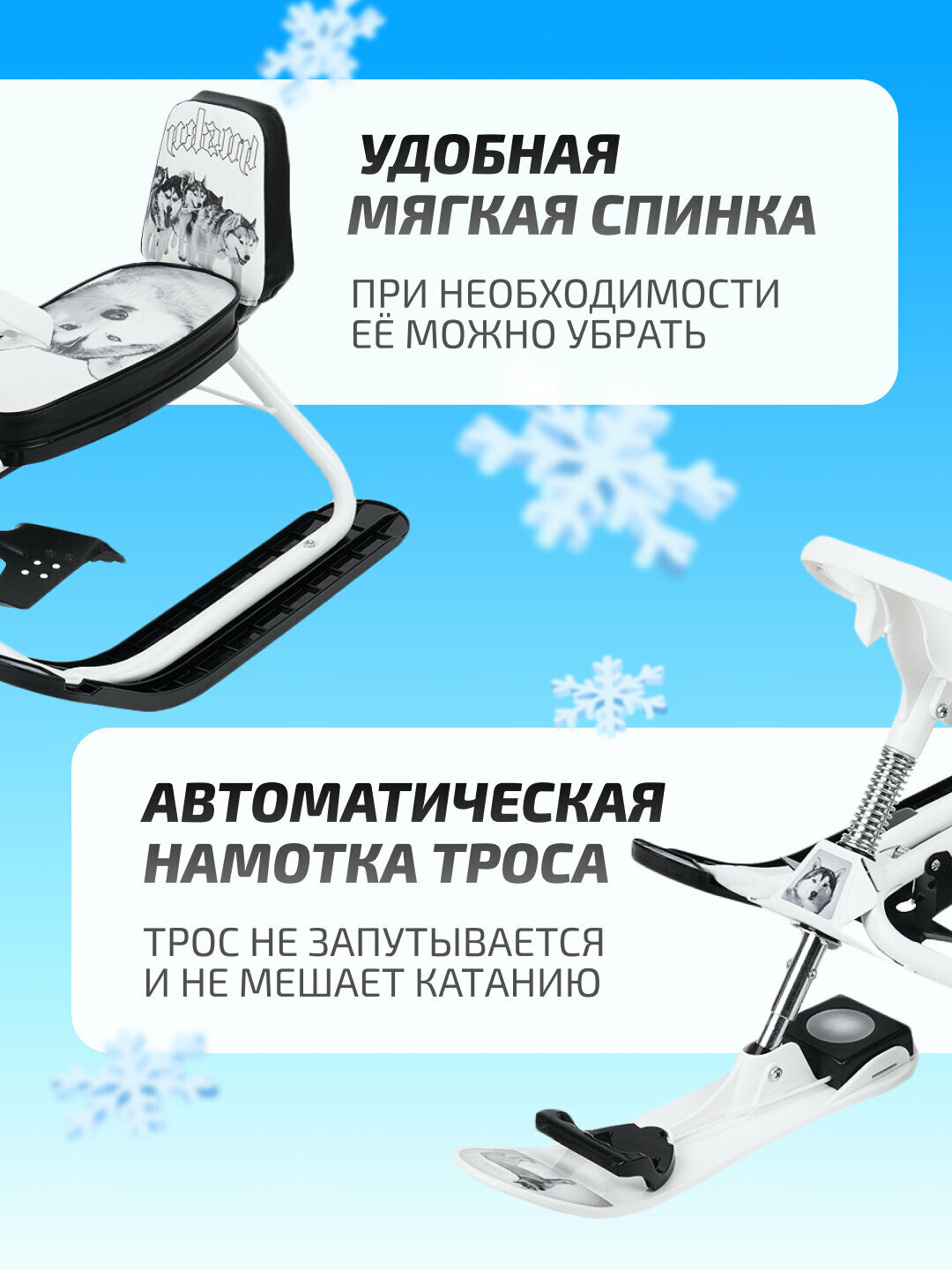 Дэми Снегокат растущий Kiddy LUX «Хаски», СНК.10-02, со спинкой, цвет белый/чёрный