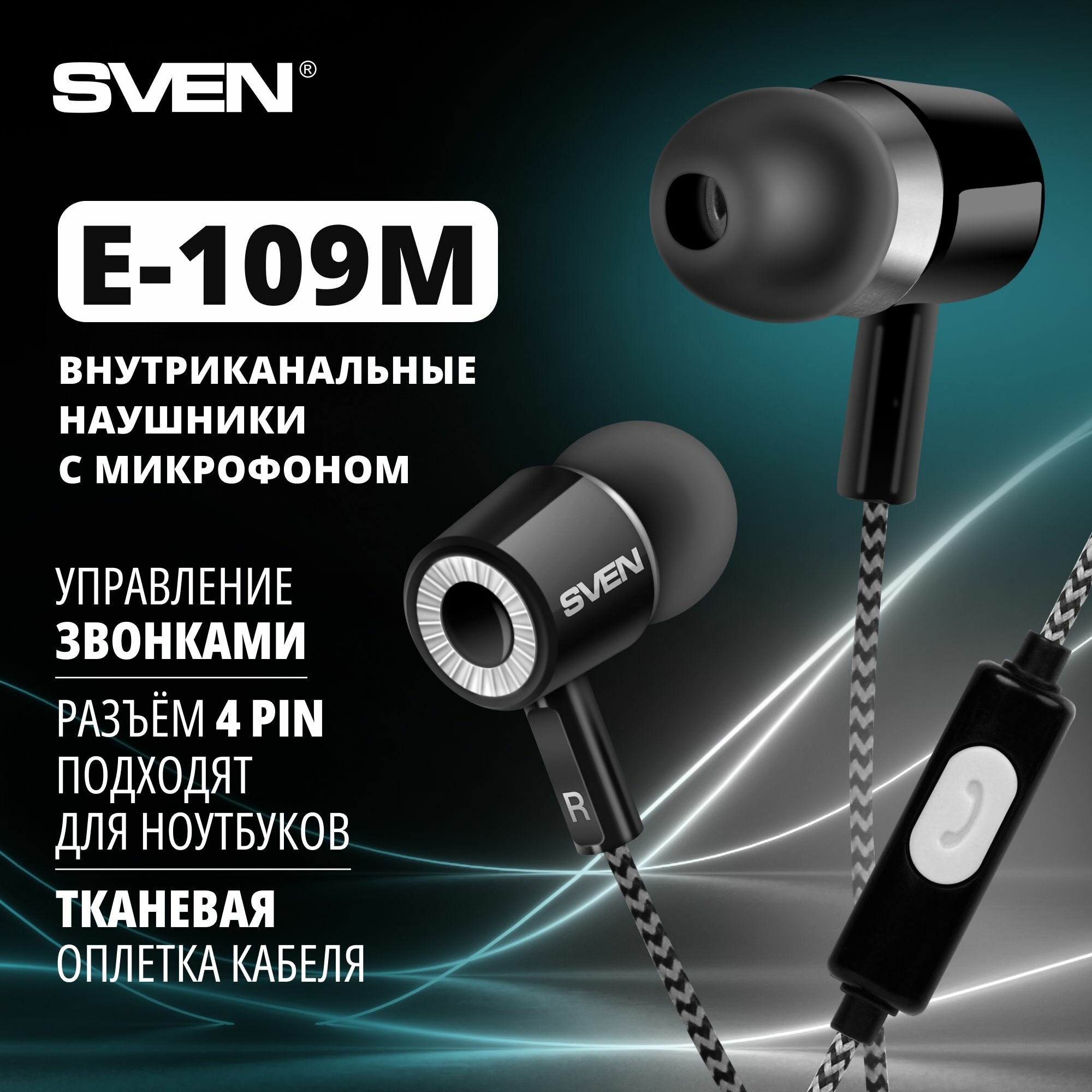 Гарнитура Sven E-109M, 3.5 мм, вкладыши, черный/серебристый [sv-016241]