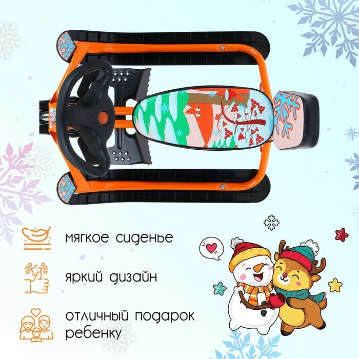 Купить Дэми Снегокат растущий Kiddy LUX «Лиса», СНК.10-02, со спинкой, цвет оранжевый/чёрный