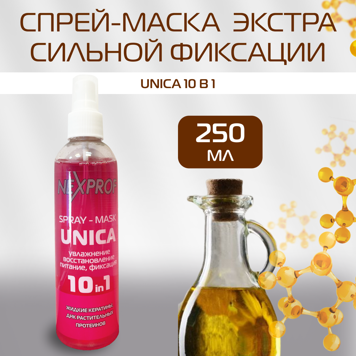 NEXPROF Спрей для укладки волос Уника 10 в 1, экстрасильная фиксация, 260 г, 250 мл
