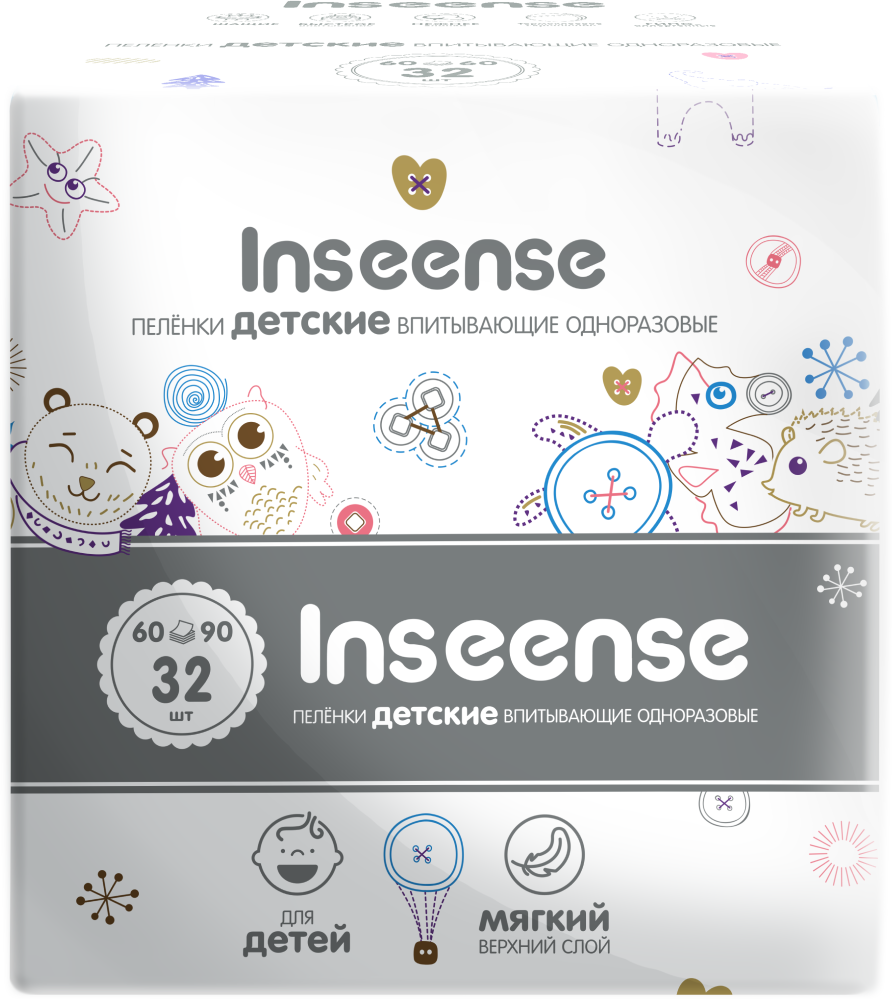 INSEENSE Пелёнки Детские Одноразовые 60х90 см 960мл, 32шт