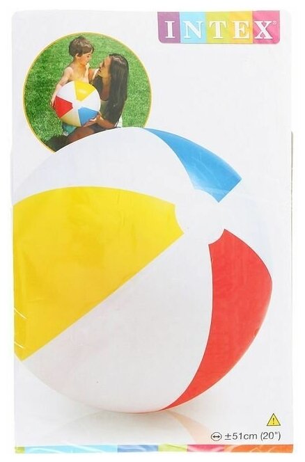 Надувной пляжный мяч INTEX разноцветный для игр в воде и на суше, диаметр 51 см