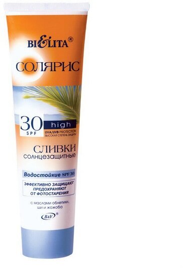 Сливки солнцезащитные водостойкие Солярис Белита SPF30 100 мл
