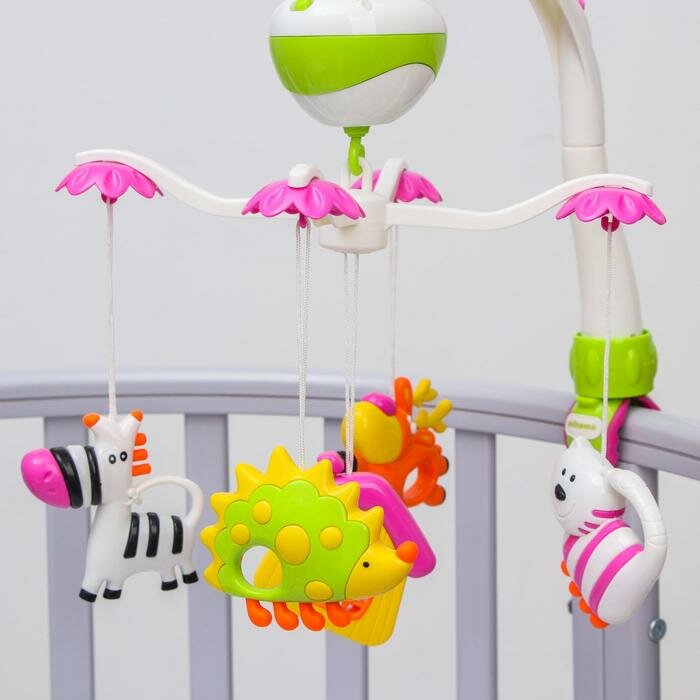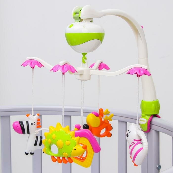 Купить Мобиль э/ф "Зоопарк": 2 режима, музыка, 5 съем. игрушек, эл.пит. АА*3 не вх. в компл.