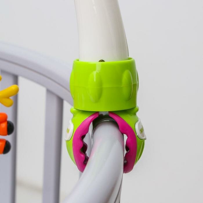 | Плюсы: | Довольно яркий, игрушки снимаются и можно использовать как погремушки |