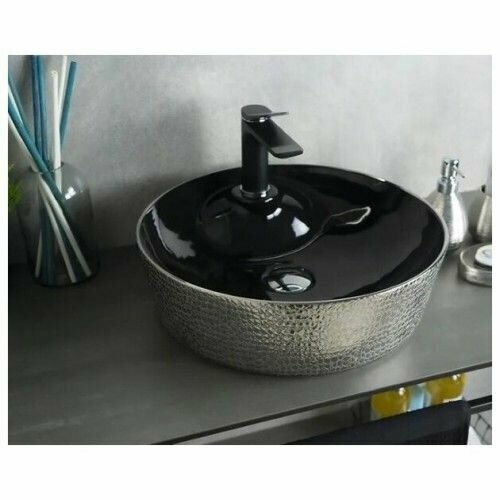 Раковина в ванную накладная 43 см CeramaLux D1306H020 черный, серебряный
