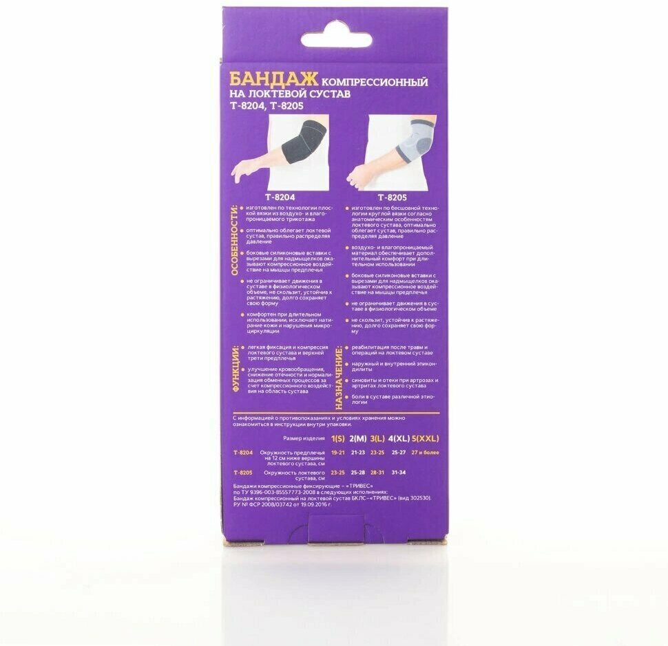 Бандаж компрессионный Тривес Т-8205 на локтевой сустав (Т.34.05), Серый, S