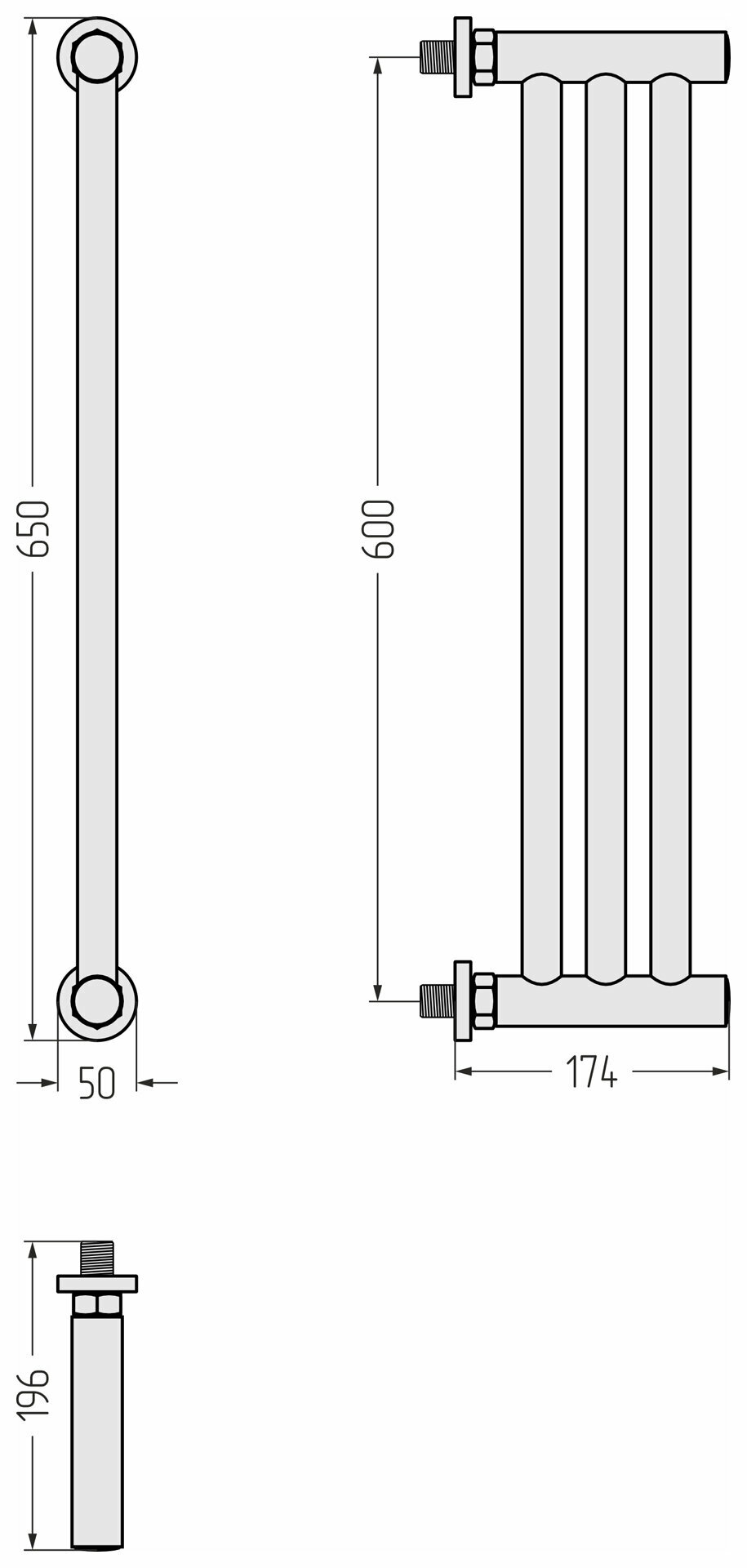 Полотенцесушитель водяной 600х195 подключение горизонтальное/вертикальное Сунержа Хорда 00-0124-0600