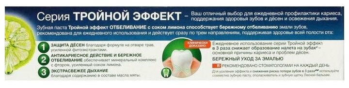 Зубная паста Лесной бальзам Тройной эффект, Отбеливание, с соком лимона, 130 гр (67507122)