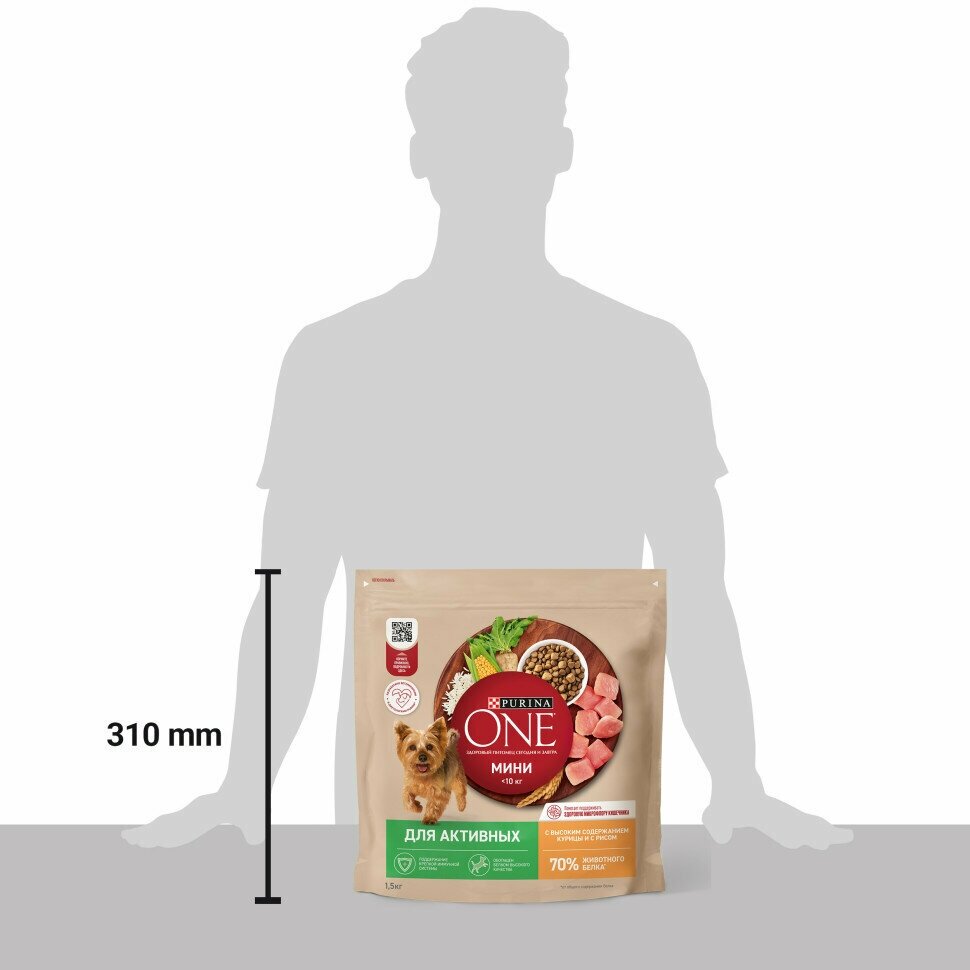 Сухой корм для собак мелких пород Purina ONE мини Активная, с курицей и рисом, Пакет, 1,5 кг, Для взрослых собак