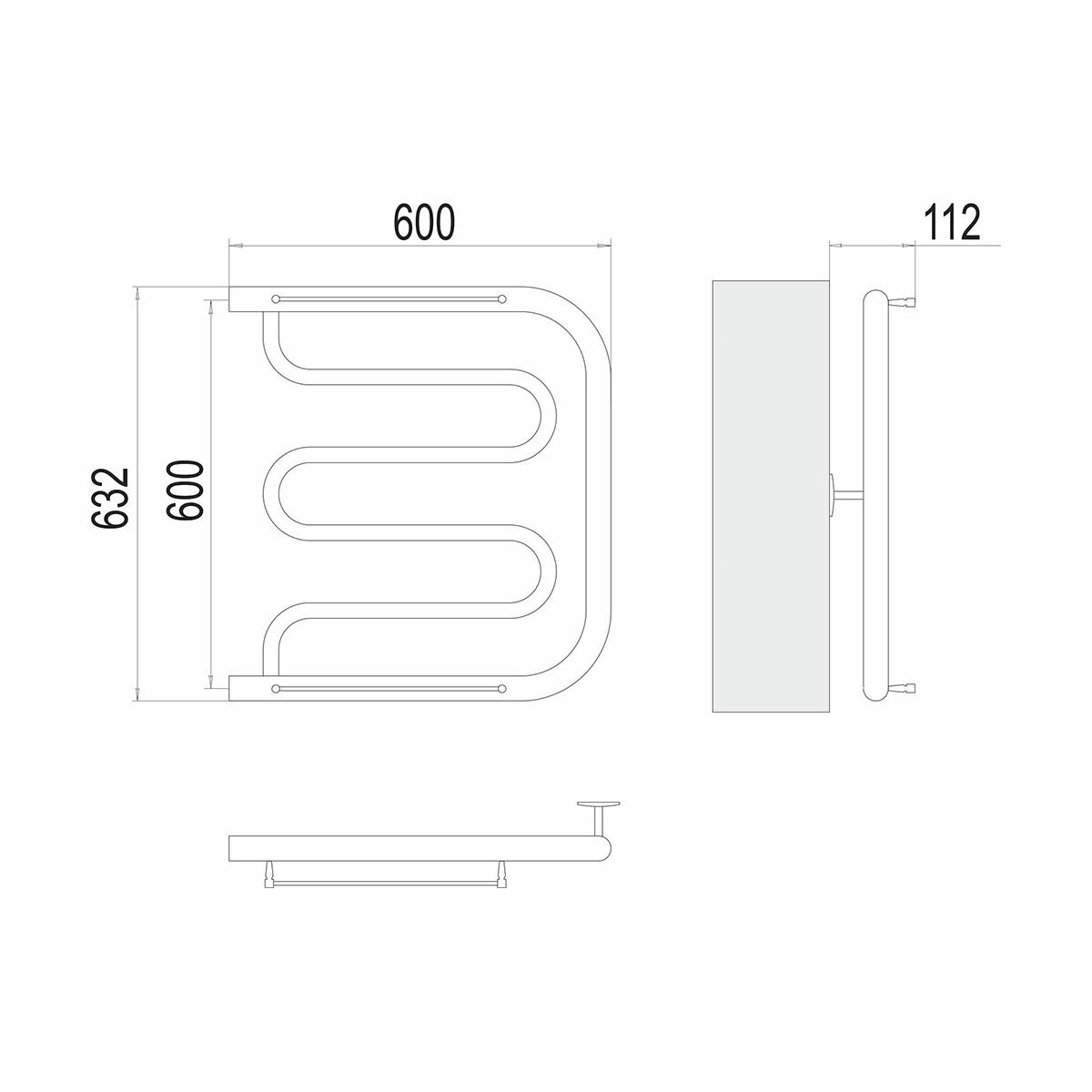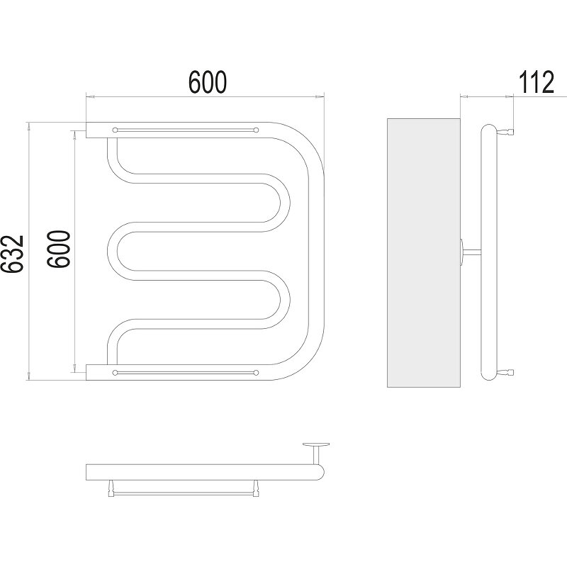 Фокстрот полотенцесушитель TERMINUS (600 мм / 632 мм / 600 мм)