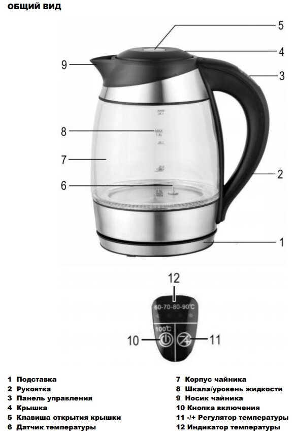 Электрочайник стеклянный с регулировкой температуры NORMANN AKL-241