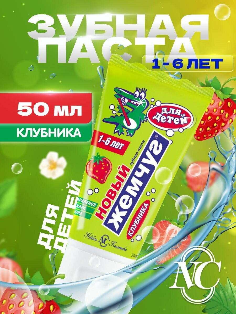 Детская зубная паста Новый Жемчуг, с 1 года, клубника, 50 мл