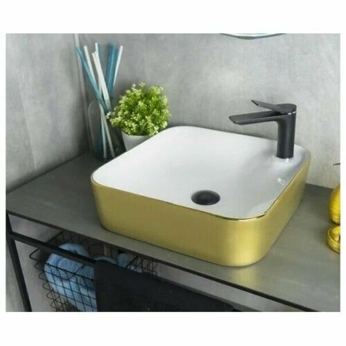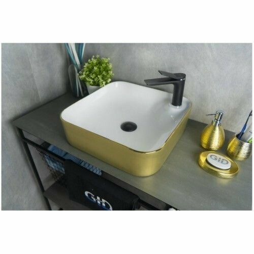 Раковина Gid Color Edition Nc429 43x43x12 см накладная белая с золотом