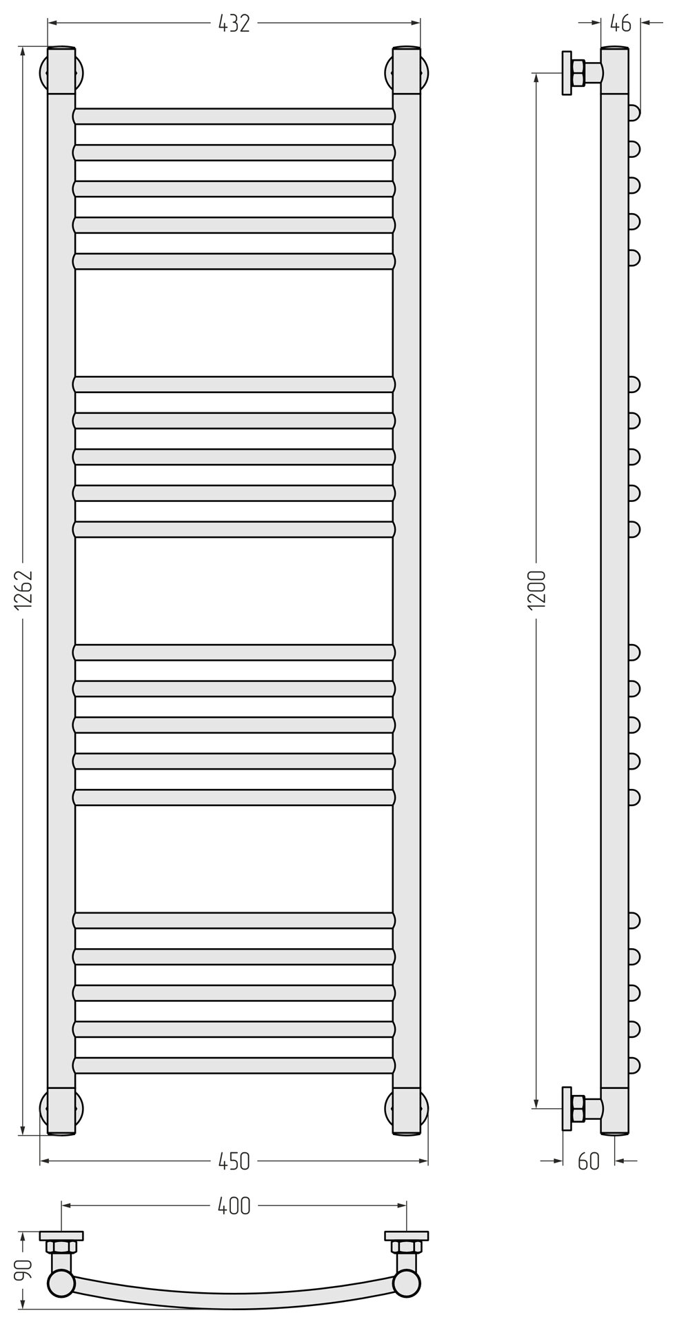 Водяной полотенцесушитель Сунержа Богема+ (выгнутая) 1200x400 арт. 00-0221-1240