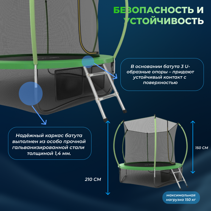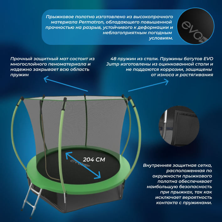 СохранитьБатут EVO JUMP Internal 8ft (Green) c внутренней сеткой и лестницей + нижняя сеть + носочки интересное: