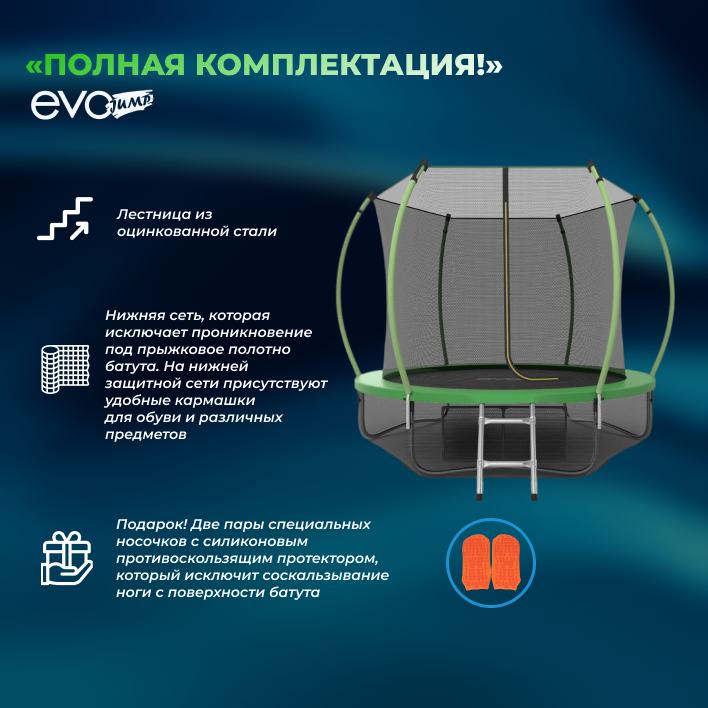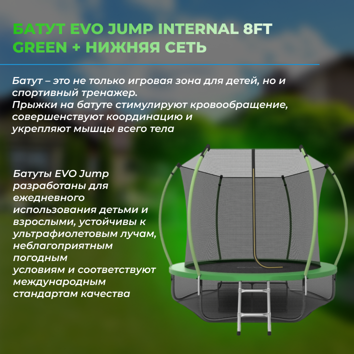 Купить Батут EVO JUMP Internal 8ft (Green) c внутренней сеткой и лестницей + нижняя сеть + носочки