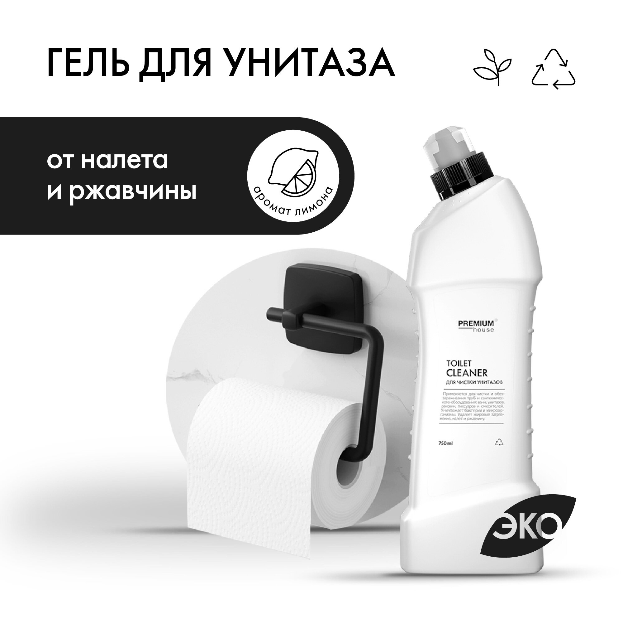 Гель для чистки унитаза с антибактериальным эффектом Premium House / Дезинфицирующее средство от налета и ржавчины