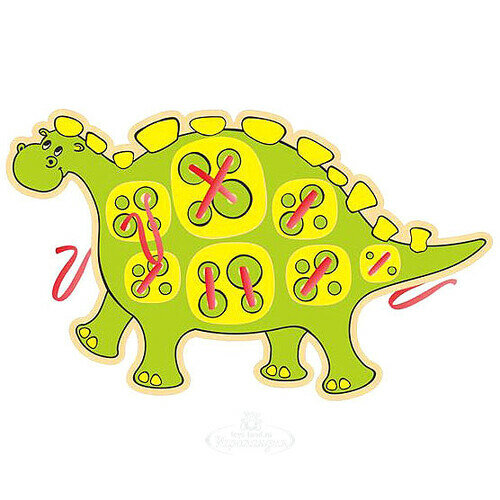 Шнуровка Woody Шнурозаврик-1, зеленый/желтый, развивающая игрушка шнуровка интересное: