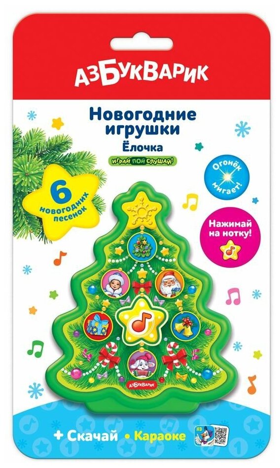 Книга азбукварик "Ёлочка" музыкальная 6 новогодних песен караоке