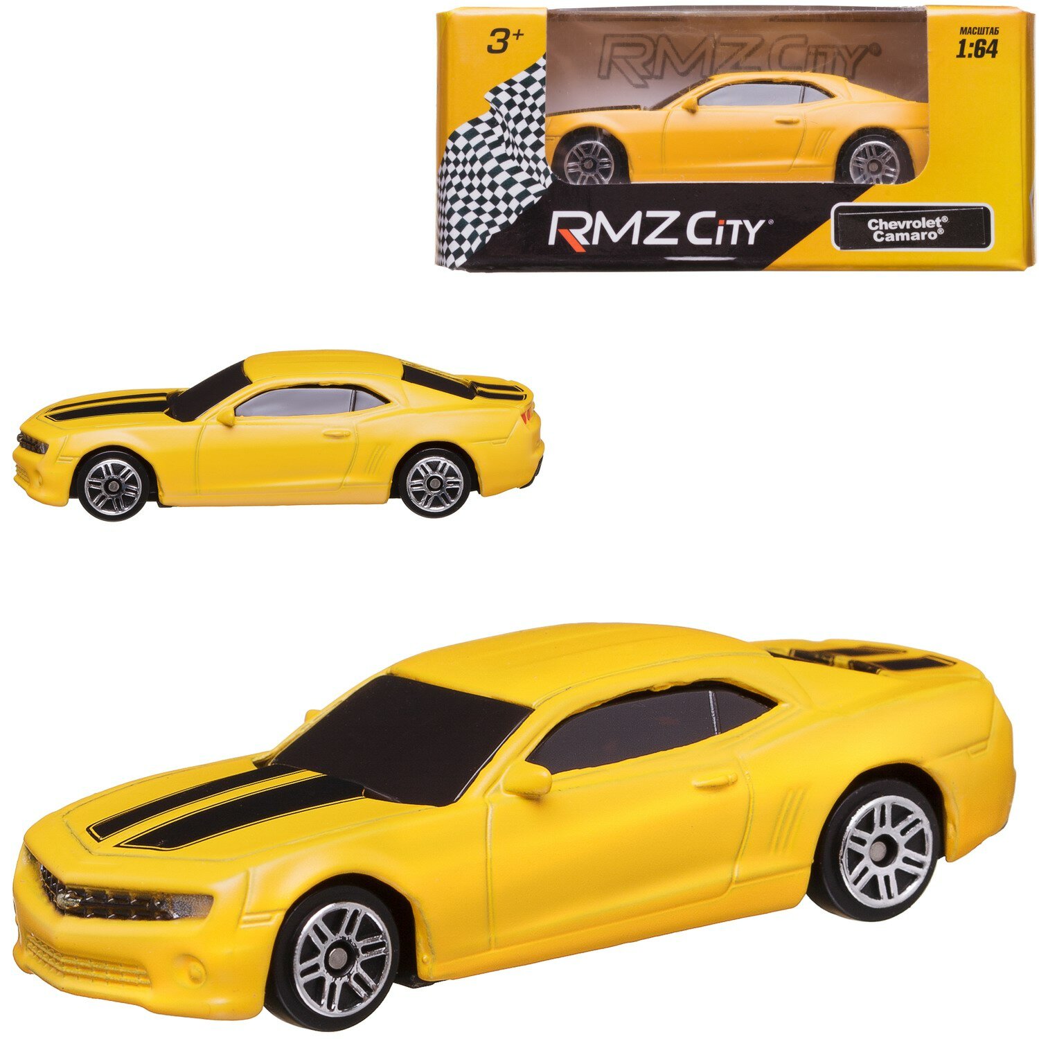 Машина металлическая RMZ City 1:64 Chevrolet Camaro, без механизмов, желтый матовый цвет