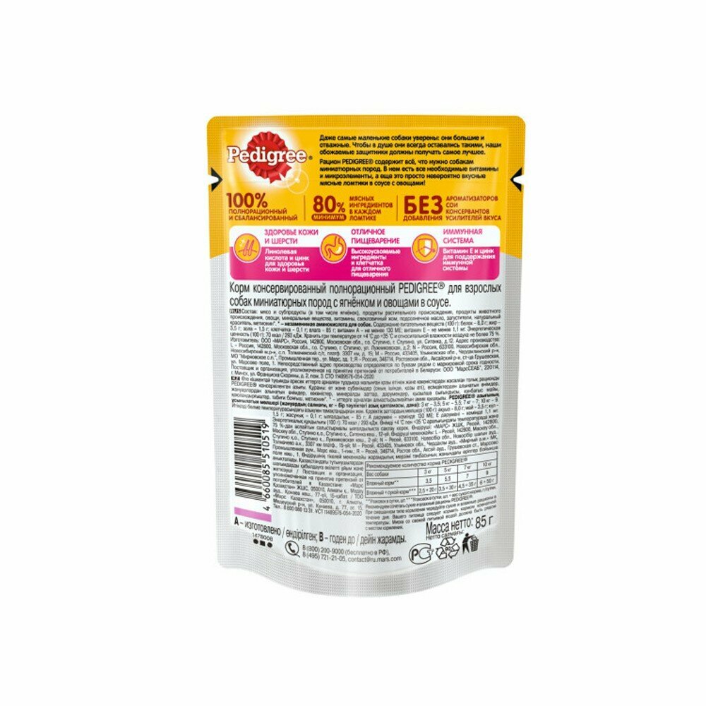 Pedigree пауч для собак малых пород (кусочки в соусе) Ягненок и овощи, 85 г. упаковка 24 шт интересное: